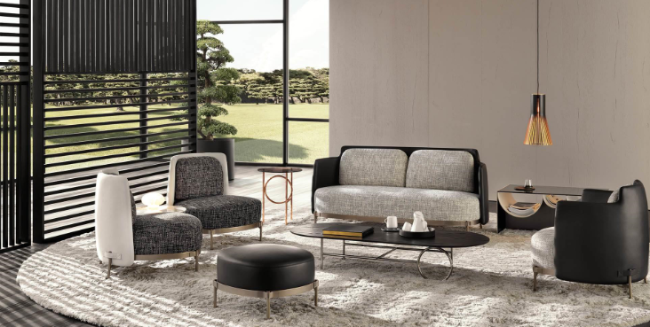 It offers multiples combinations with its low and high back, from 1 to 4 seaters and its ottoman.
